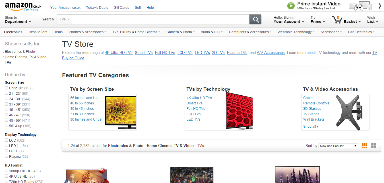 Do not miss out on Amazon’s latest television offers. And with their new Amazon Prime service you could be sitting in front of the big screen in your own home in no time at all enjoying your favourite movies.