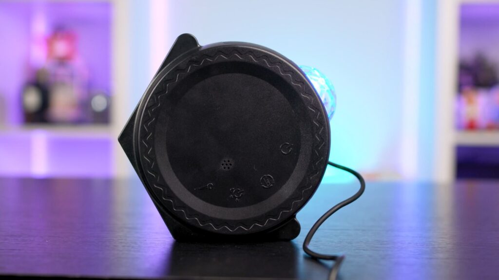 But this is a galaxy projector after all, and I suppose we need to talk about the actual projection effect. Well, it comes pretty close to what’s being demonstrated in their adverts, but there was still something to be desired by the effect it gave. They’re not lying, however, just maybe exaggerating, which is exactly what adverts are supposed to do. Placement is absolutely key to getting the best effect. I first tried the Astrol Light in my living room by placing it towards the back of my coffee table which sits in between my sofa and chair, but the sofa arms blocked off a lot of the light. This has a lot to do with the orientation the light can sit. There are three separate feet, which are there to aim the Astrol Light either upwards, or at a diagonal angle. When it was on the coffee table, it was firing diagonally out into the room.