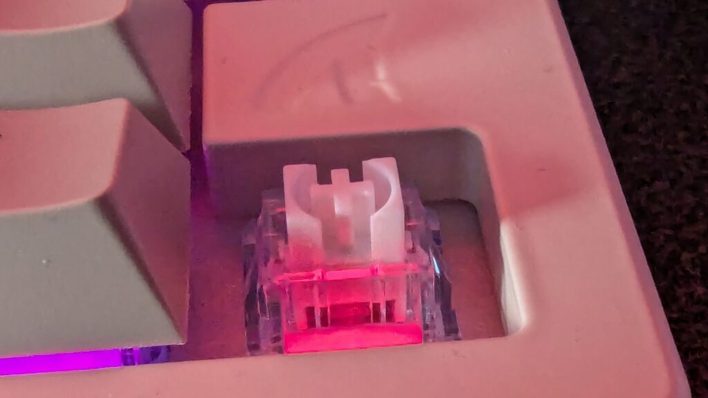 Inside you can find a 5000/10000 mAh high-capacity battery which Attack Shark claims to last up to 150 hours. I could slightly agree I suppose. I must say I haven’t measured it exactly, but I have certainly noticed that I have not had to reach for a USB Type-C cable nearly as often as my AULA F75 to charge this thing which is a good thing in my eyes. Speaking of charging, there’s multiple ways you can use this keyboard. The first being connected via USB Type-C of course to your desktop or laptop. It comes with a wireless dongle which is how I’ve been using it, and finally there’s Bluetooth for compatible devices. You do get a Type-C cable with aviation connector in the box but you also get a coiled extender as they seem quite fashionable right now. I don’t really get it when there’s a wireless option, but sure, there might be some kind of difference in terms of input lag here when used with a decent wired cable. I didn’t notice any difference, but then I’m not a hardcore eSports gamer to really hone in on that.