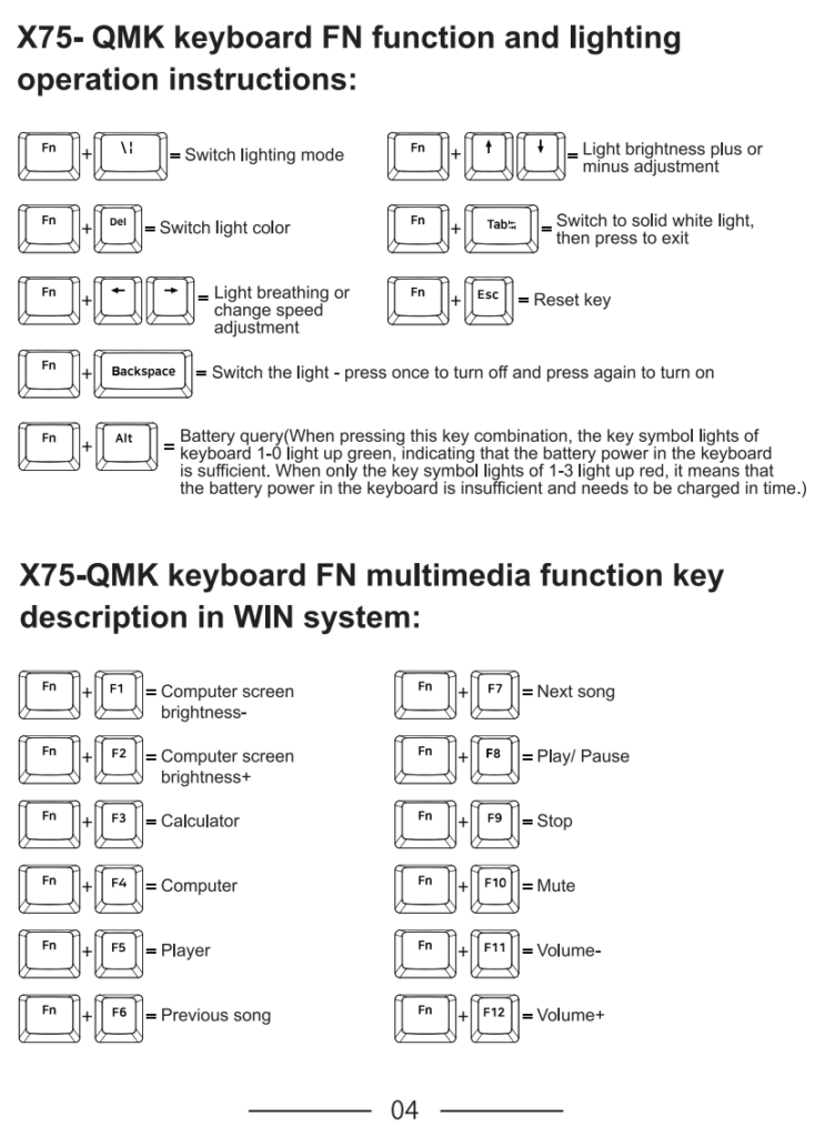 There is a bit of RGB lighting at play here, with a number of effects to choose from though I did just leave it on a rainbow wave type effect though there are some pretty complex keyboard shortcuts to learn if you want to get into changing your colour effects. FN+backslash for example cycles the colour patterns and there are a few FN and F key combinations to do your media functions. These are listed below though if you wanted to try for yourself.