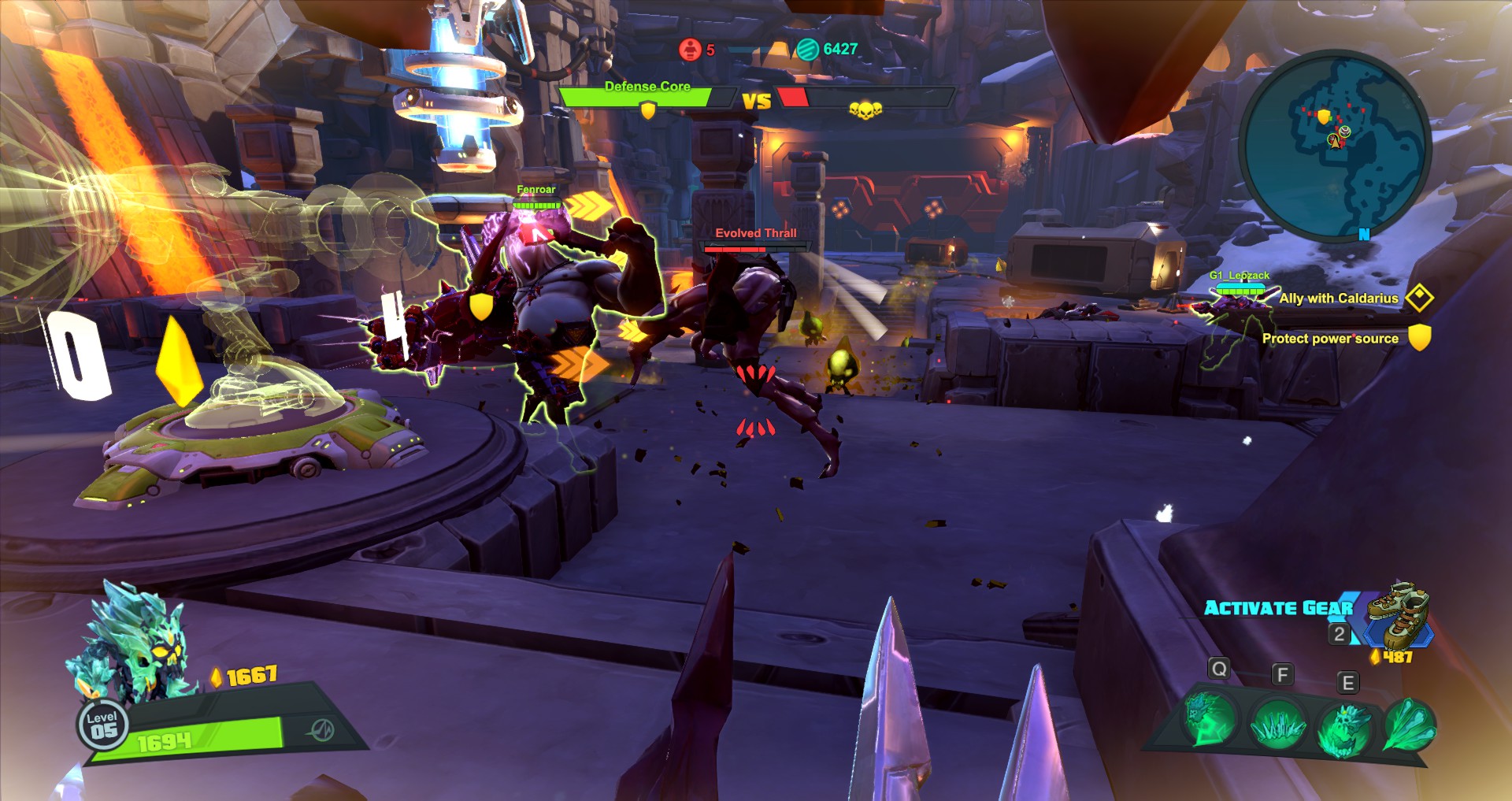 Levelling your character takes place, but very different from that of Borderlands or other RPGs. Each time a game starts, whether it’s single or multiplayer, your character starts at level one. This is where more MOBA style play comes into action. You earn XP which grants you levels throughout the game which can be used in a tech tree. These levels go towards more damage for a particular skill, faster movement speed, stronger armour and so on. There is also a loot system, of course, it’s Gearbox what else did you think there would be? These come in the form of activation items which you bind to your account. Again, these add stats throughout a single game and are collected in-game and also for finishing a mission. They are ranked from common to rare in the usual colour range.