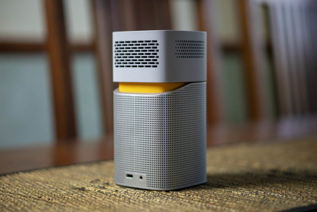 The unit is relatively small, standing at 80mm x 155mm x 80mm thought is a little on the heavier side at 708g. It comes with a carrying case, which will protect it from scratches when inside a backpack or luggage. On top you will find four buttons including the power button. You’ve got a volume source selector too. The annoying thing is the fact there’s no way of navigating the menus without the remote, so wherever you take the projector, the remote must go with it. On the side you’ve got the focusing ring which is extremely sensitive, and it took a little bit of time for me to focus the image properly.