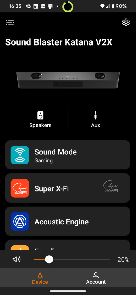 The Katana V2X as mentioned earlier can take advantage of Creative’s SXFI technology, but there’s a caveat to that. You have to use headphones. There’s the headphone jack on the front of the soundbar itself, just left of the LCD screen, and I used my 512 Audio headphones to test this. For the most part, yes, SXFI does give you a better audio separation when playing certain games, but I wouldn’t go as far as to say it could actually pinpoint enemy placement in a multiplayer shooter like Modern Warfare 2 for example. It added a bit more immersion when I was playing the new Resident Evil Village DLC though which was nice. As soon as SXFI kicks in though, you’re going to have to crank the volume of the soundbar. Everything got super quiet. Just remember to turn down the soundbar when you unplug your headphones. It does not remember the audio levels you have set on different modes. It does require the Creative SXFI app to fully set up the device which is available on both Android and iOS app stores. Just download the app to create your SXFI profile which includes taking measurements of your ears. Mine was already made as I had a demonstration with Creative at CES a few years ago.