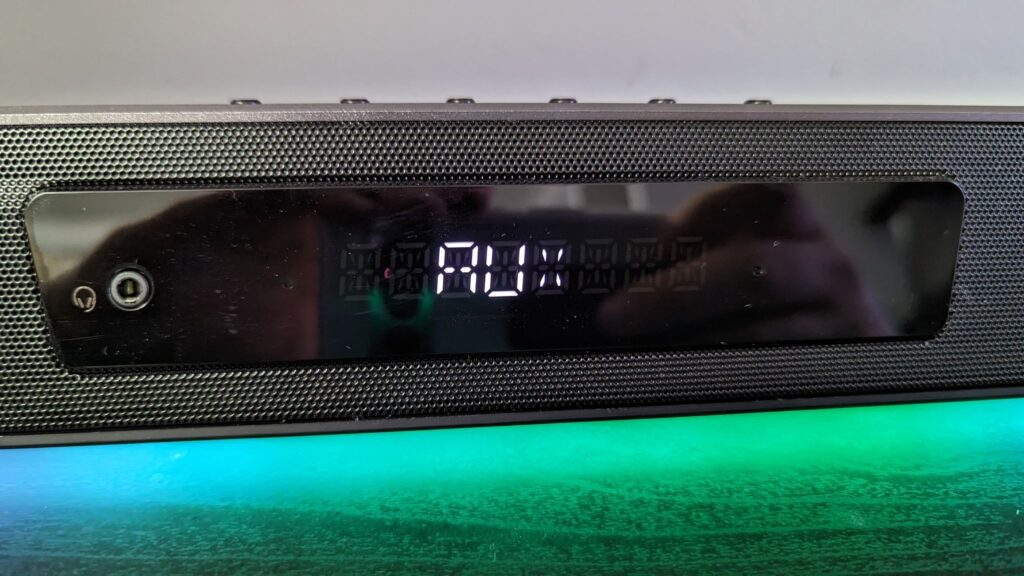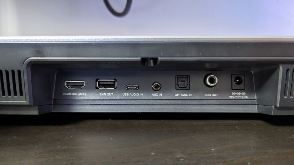 Around back you’ve got several inputs. The first, and one that I find quite impressive for a ‘gaming soundbar’ is the fact it has an HDMI Arc input, which is perfect for those plugging this into their TVs. It means all audio signals getting to the TV can run through the soundbar. You do have an optical port, a USB-C audio input and a headphone port on the front. You can also connect this to Bluetooth devices as it’s using Bluetooth 5.0.