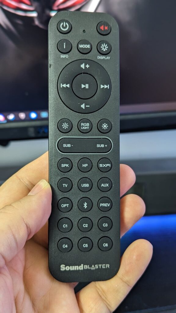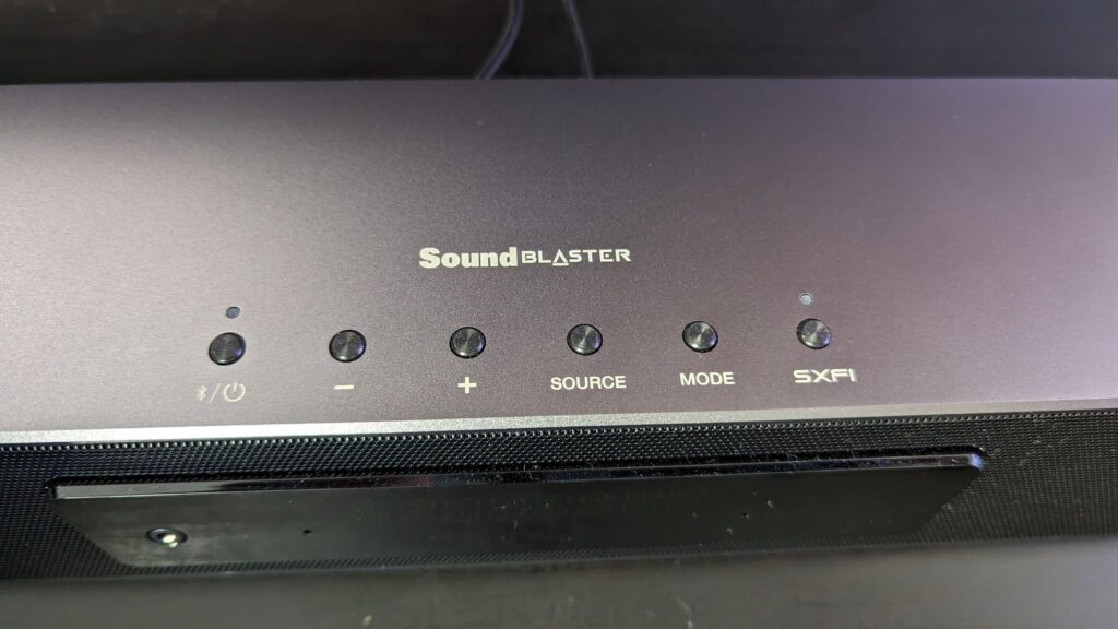 The included remote is pretty baffling, and why Creative felt they needed so many buttons on such a small piece of equipment is beyond me. It’s nice the soundbar came with a remote, as there are gamers out there who could easily pair this with a TV for console gaming, but when you could easily have your inputs on one button to cycle through rather than all inputs having their own buttons, it just gets a little messy on the bottom half of the remote. One thing I did find that didn’t line up, was the fact that I could turn on SXFI using the remote, even if headphones were not plugged in. Pressing the HP button turned on headphones and auto-turned SXFI on, but then trying to return to another input meant I had to turn off and turn on the soundbar again to reset everything.