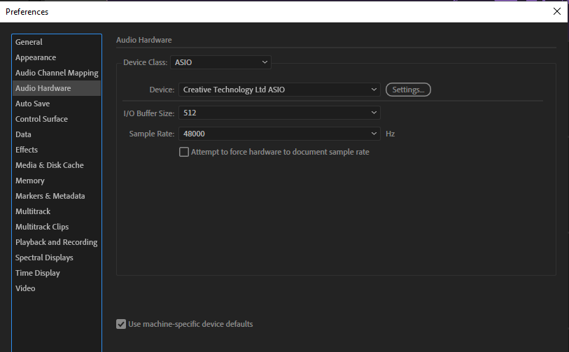 Recording on this thing is incredibly simple to get started. As I am not really a musician, or have the means to really plug any instruments into this thing, I stuck to testing it with a microphone, of which I am using the Audio Technica AT2020 in white. It’s a fantastic condenser microphone and one that puts the Audio A3 through its paces. I use Adobe Audition to record audio for content and used it successfully with the A3 too. By default after downloading the A3 driver from the Creative website, when I started a new multitrack project, the A3 was sending XLR Input 1 to the left channel, and XLR Input 2 to the right channel which made audio sound a bit disorientating, having a different voice in each ear. Now because of the nature of this audio interface, you can set it up to record on two separate tracks at the same time. In the Audio Hardware settings, I set my Device Class to ASIO and then targeted each microphone individually inside of the multitrack window. As seen in the images below.I had to choose to record in mono on both tracks because if I tried to record in stereo, I’d only get a single channel being recorded. But this is okay. Each voice being mono means I can manually pan the audio, so I had no problem with this.