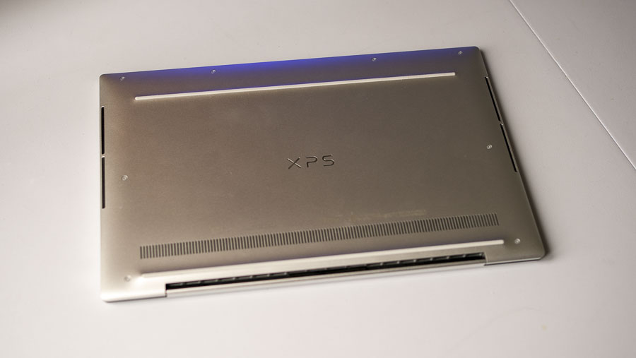 Down the left hand side you can find a Thunderbolt 3 input as well as a mciroSD card slot too for transferring images and video from your devices. The right hand side also has a Thunderbolt 3 input as well as a headphone jack. What’s nice about having two Thunderbolt 3 inputs is the fact it comes supplied with a dongle, which has a standard USB Type-A input on the end, so you can get away with plugging in more traditional devices. It also means that you can keep the laptop powered too, as this relies on one of the Thunderbolt inputs. It’s also capable of transmitting an image to a second monitor through the Thunderbolt port if your external monitor is compatible. But unfortunately, the lack of ports means you’ll be carrying around dongles with you if you need a more universal connection like a USB Type-A, SD card reader, Ethernet or a HDMI input for a monitor. The edges of the laptop are double anodised to minimalise scratches as much as possible too. So even if you miss the ports with your chargers while you’re scrabbling around the sides, there shouldn’t be any damage if you skid the Thunderbolt charger across the edges.
