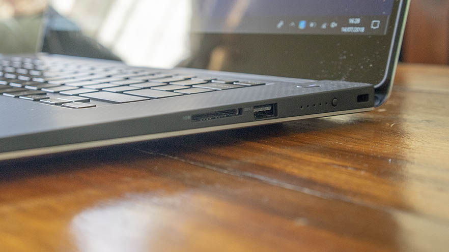 Along the right hand edge you can find a kensington security lock, a USB 3.0 port and an SD card reader, while on the left is another USB 3.0 port, a HDMI connection for external displays, a Thunderbolt connection, a headphone jack and of course a port for its charger. It uses its own power brick rather than a USB Type-C port which is a little disappointing, but alas, this is a small complaint.
