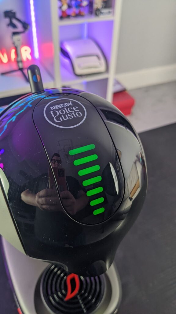 The coffee that’s dispensed, and I will say now I’m no coffee connoisseur or anything, and I know you lot down in the comments of previous videos talk about the flavour, so please, let us know your thoughts. But I think the coffee made by the machine is decent! My favourite flavour out of the new Starbucks branded ones I’ve tried is definitely the Macchiato one. I do like a milky coffee. The Americano is also pretty good, but it’s one of those coffees that will give you a caffeine buzz. The machine can also produce 15-bars of pressure too which is needed to produce that frothy milk type texture, though I’m sure there’ll be some people out there that would argue this, as it doesn’t have a dedicated frother on the side of the machine.