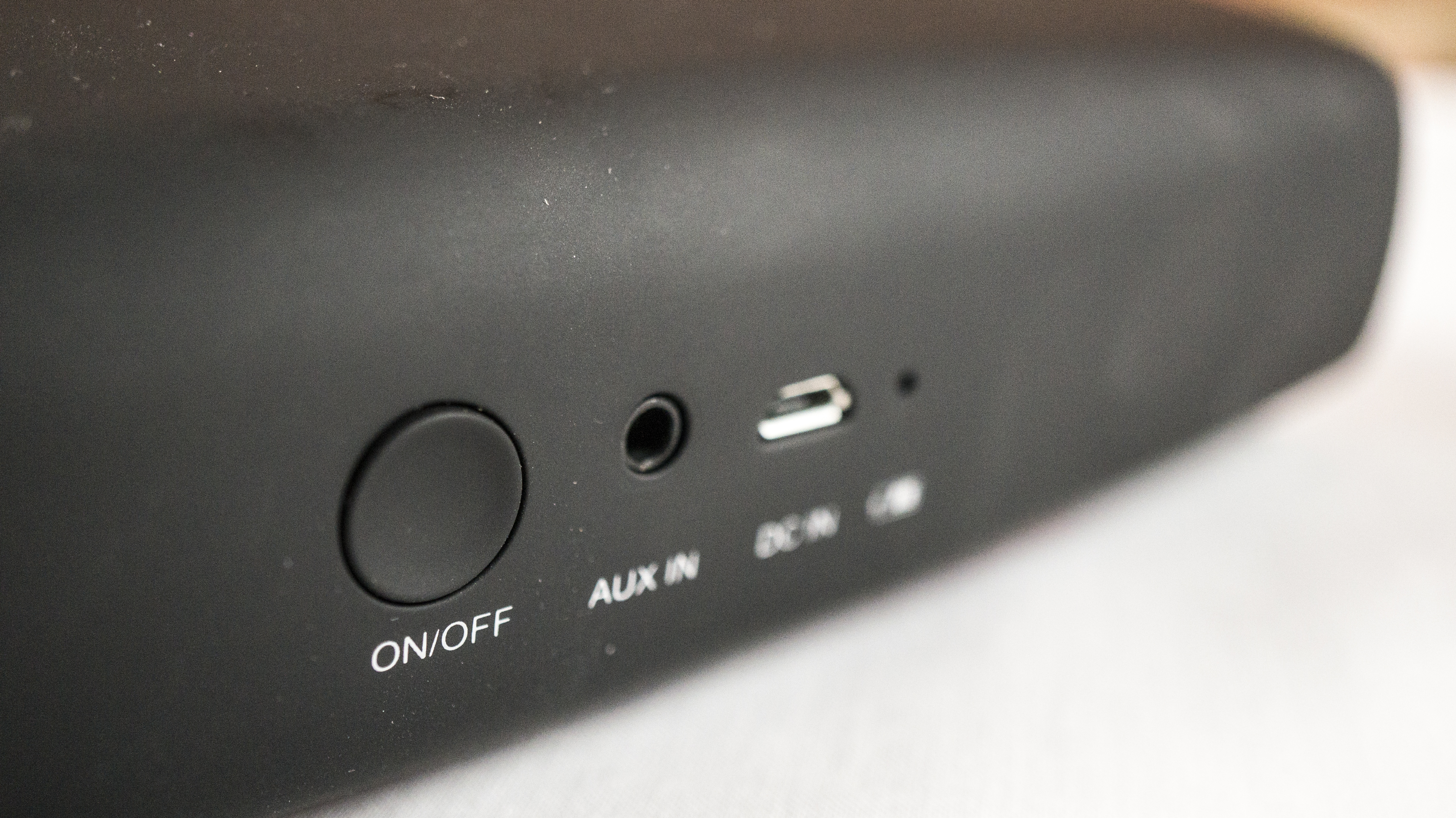 The speaker is covered in a matte black rubber material giving it some good protection. It probably won’t survive drops from a height, but if it’s being transported around in a bag, getting bumped about won’t cause any damage. It has red accents which look quite smart against the mainly black casing.