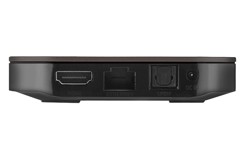 The box landed on my desk and it’s very small. Open it up and I’m greeted by a very small TV box, one of the smallest I’ve seen, plus a remote control, power lead, HDMI cable and a set of instructions. It’s so very small and light, and even fits in the palm of my hand. It’s got glossy black sides, with a dark, grainy, wood effect on top. I’m not sure the wood effect will be for everyone but it works for me. It looks like a high end piece of kit and not tacky at all. On the sides of the box you will find a HDMI port, USB port, ethernet port, optical in for your digital audio and power input.