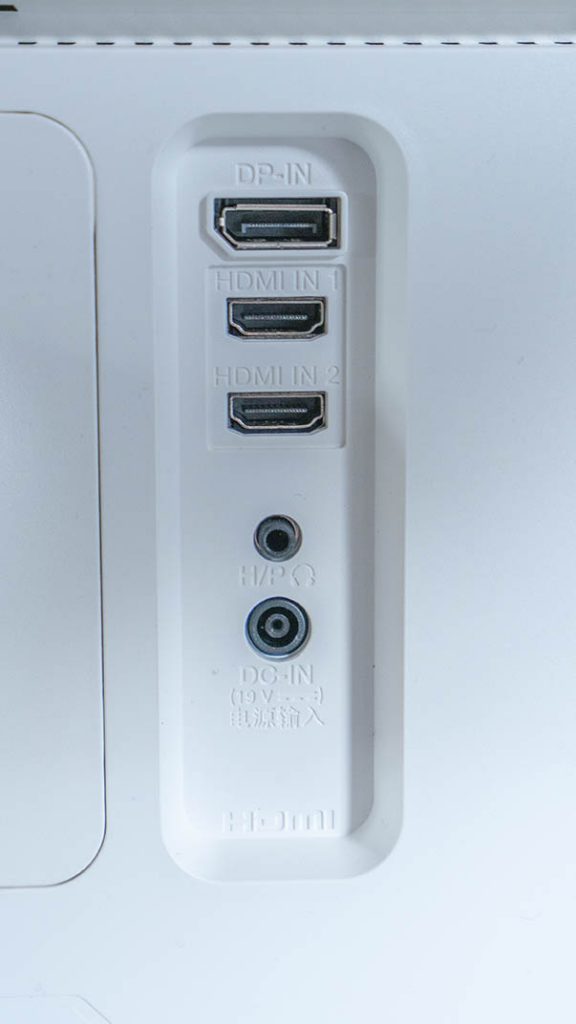 The rear is fully white which is a drastic difference from the black bezels, but it does still look quite good. Inputs too are very minimal, with only one Display Port, two HDMI inputs, an audio auxiliary port and power. There are no USB ports on the monitor for powering and charging devices or even passthrough from your desktop.