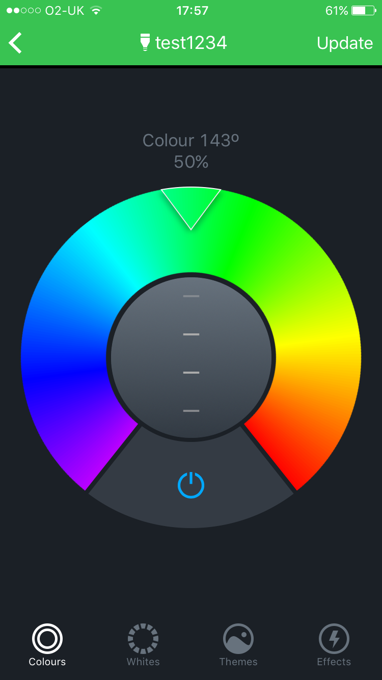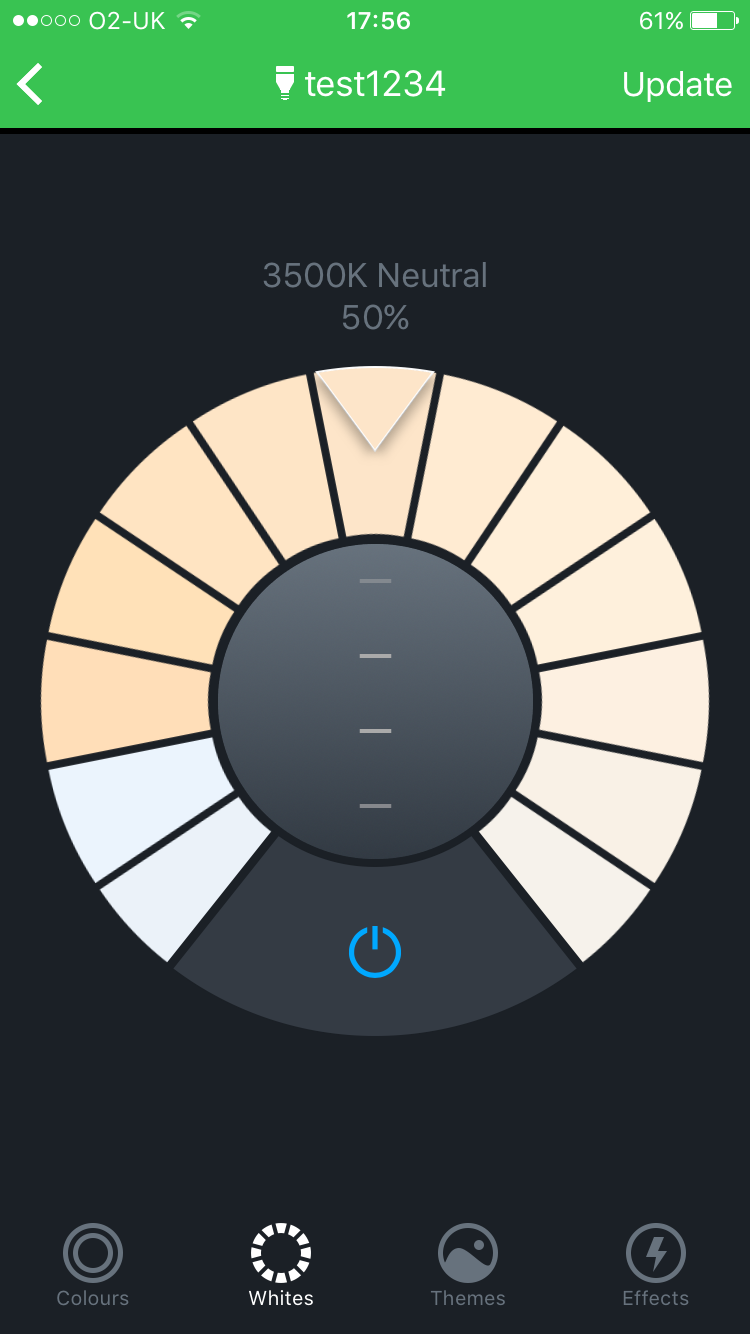 The lamp is WiFi enabled, meaning it can be controlled via an app on your smart device. It’s easily set up. First you download the free app, connect the lamp, turn it on at the mains and follow the instructions on the app. Very easy, hassle free. Once I was connected, the fun began! There are several options within the app but the four key ones are Colours, Whites, Themes and Effects. Under each of these options, you are able to change how the lamp works. As you may expect by the titles, colour allows you to select any colour you want for the palate on-screen. Whites allow you to select from hundreds of different whites, from warm white to cool white. Themes allow you to select pre selected settings, based on your mood and effects allows you to have a bit of fun! The app looks great, is very easy to use and very responsive. As the lamp is WiFi enabled, it can be controlled remotely.