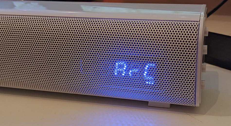 There’s also a small display which is bright and clear enough to see from a distance, and let’s you know which source is currently being used. Most of the sources here use abreviations, but things like AUX and ARC are spelt out. BT is there for Bluetooth though, but it’s all simple enough to understand for sure. It’s not intrusive, but, if you’re someone who gets distracted easily by lights from your peripheral vision, hold down the centre button on your remote control, and you can turn it off.