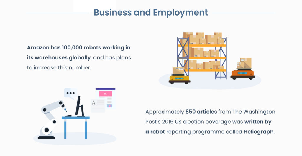 It’s estimated that up to one-fifth of the global workforce could lose their jobs by 2030 due to robot automation, affecting 20% of UK employees. Machine operators and food workers are most vulnerable, but some unexpected roles are also at risk. Google has already revealed its advanced AI bot called Duplex, which conducts “sophisticated conversations” and completes admin tasks such as booking appointments. Robots are even moving into creative sectors. Approximately 850 articles from The Washington Post’s 2016 US election coverage was written by a robot reporting programme called Heliograf.