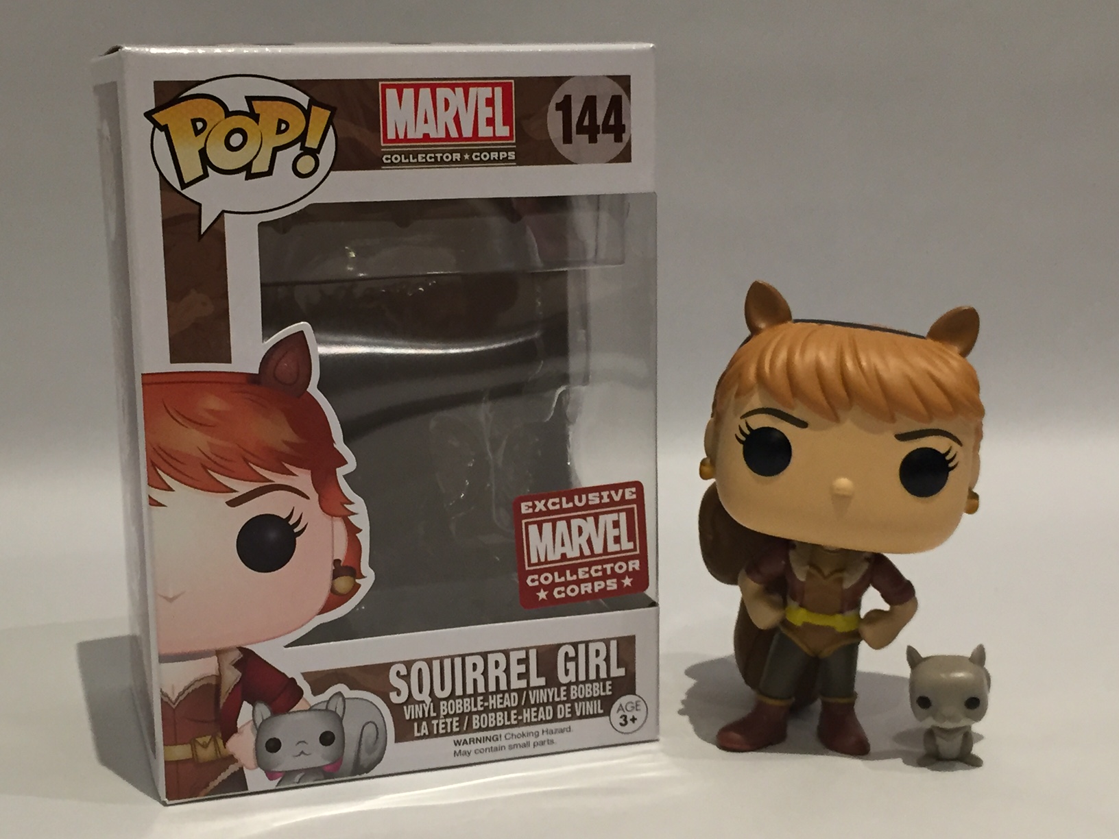 To finish off and probably the most desired item of all in the box, the Funko Pop, and this time round we have…Squirrel Girl. You might be thinking, who is she, and that’s probably due to that fact that superheroine have yet to get their own blockbuster movie. But die-hard comic book fans will know who she is. In brief, she has the ability to communicate with squirrels and it turns out, that’s quite a handy tool, as she has been able to beat many super villians! I love the Pop, it’s Marvel so it’s a bobble head (which all Marvel heads are to let you know) and not only do you get Squirrel Girl, but you get a tiny squirrel companion which is also a bobble head. It’s cute.