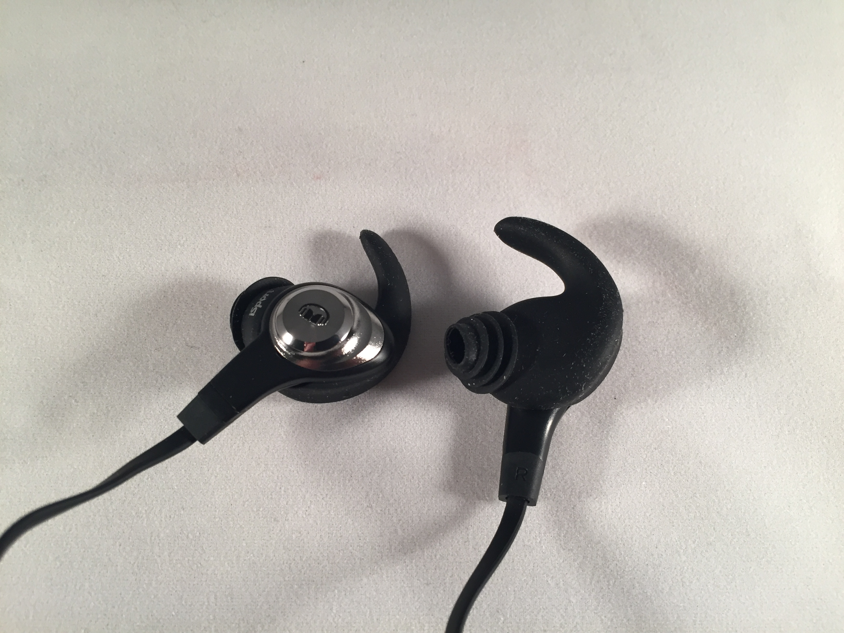 In the box is just the headphones and a carry pouch for on the go protection. The headphones are available in three colours: black, pink and lime in the wired versions and a funky lime and blue for the wireless. We got sent a black pair and I really like the way they look! They are predominantly matte black in finish, with hints of shiny chrome. Very subtle design, which I like but if you do want to stand out, the pink or lime will be right up your street. As mentioned before, these are in-ear headphones so they get inserted into your ear canal and should be quite secure. These headphones also come with added support, in the form of a spongy plastic arm of sorts, that help secure the headphone even more. The headphones come with a 3.5mm aux jack at the end, typical four foot lead with built-in control. The sports clip is very handy, and will help with cable management.