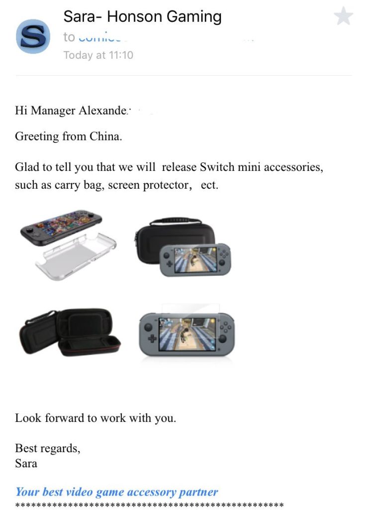 Not heard of Honson, they are a Shenzen-based company and have been trading since 2004. They sell all sorts of console accessories, controllers, cases, stickers, that kind of thing. One of their categories in named ‘Nintendo Switch Mini’ and within that, there are a number of products including soft & hard carry cases and screen protectors. Everything is new and also out of stock.