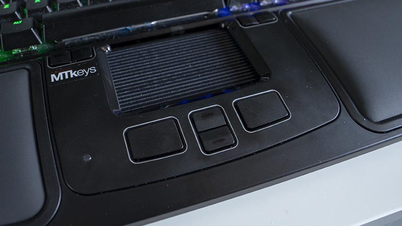 Overall though the build quality of this thing is pretty solid. It’s also quite practical too, especially with the function keys positioned around the mouse area. The real estate however of this thing is pretty huge, so you’re going to need a decent amount of desk space for it to fit, depending on the size of your keyboard of course. The rubber flap at the back ensures the keyboard doesn’t slide away from the bottom wrist rests.