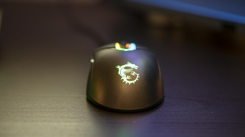 The middle button under the scroll wheel is where you can cycle through your DPI settings set inside of the Dragon Centre. This is surrounded by a seamless U shaped RGB light which follows the pattern of the logo on the back of the mouse. One shame, is that the Mystic Light feature that syncs up your RGB betwen mouse, keyboard and in-case items like fans and a motherboard are all a little underwhelming. I love the rainbow effect, but Mystic Light doesn’t allow you to change the speed in which the effect is cycled. So I’ve neded up with a garish light show on my desk. If I set the Whirlpool mode on the individual products, I can change the speed and it all looks a little more tasteful, but then my RGB won’t sync up.