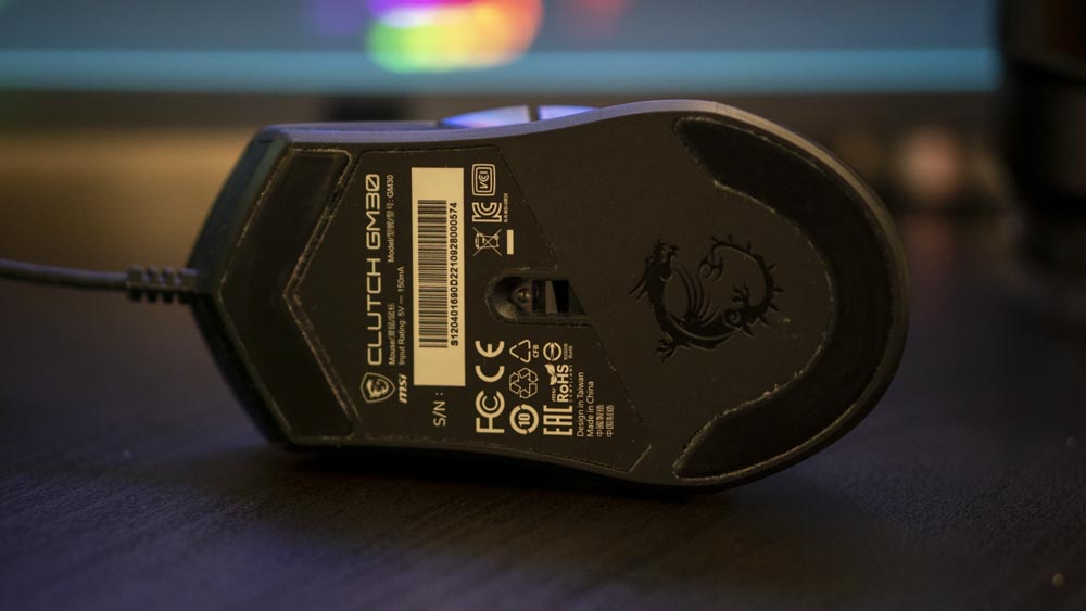 So what’s at the heart of this mouse? MSI have opted for the Pixart PAW-3327 optical sensor which allows you up to 6200DPI. Why anyone would go that high is beyond me, but it’s nice to know my mouse is better than yours right? It has a 1000Hz polling rate too which is customisable down to 125Hz in the Dragon Centre. What helps with the sensor is the fact that there are quite large pads on the bottom at the front and rear, which for me and my wooden desk from IKEA, have been a dream to use. This mouse glides nicely. I haven’t paired it with a mousepad, simply becasue I haven’t got one.