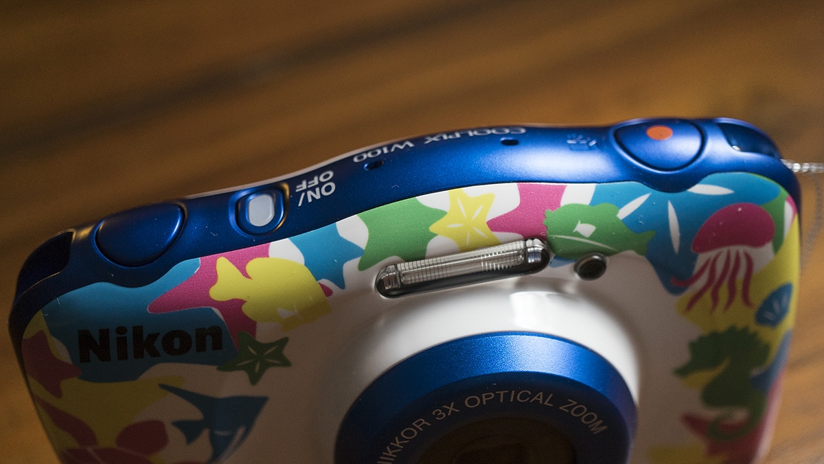 The Nikon W100 is primarily a waterproof camera, wrapped in a compact body made from plastic. There are no rough edges here, and the smooth body makes it a little difficult to properly get a grip. It doesn’t feel overly tough either but the metal ring around the lens and the added bumper protection around the outside will ensure the camera will survive a couple of drops here and there.