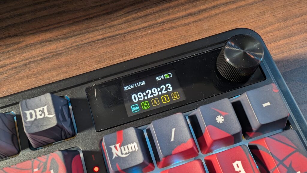 The K719 takes on the small LCD screen like we’ve seen in other Redragon keyboards, and is there to display the time and important status info about the keyboard, such as your CAPS lock being switched on or the battery status. You are able to upload a custom GIF to the board too, if that’s more your thing, and that’s easily done inside of the Redragon software.