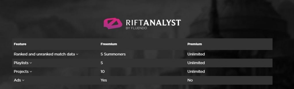 The software does come in free and premium versions, with the latter only costing £3,99 and will open you up to a more unlimited experience as stated by RiftAnalysis in the table below. And come on, £3.99 to become a better player in LoL? That’s not bad at all.