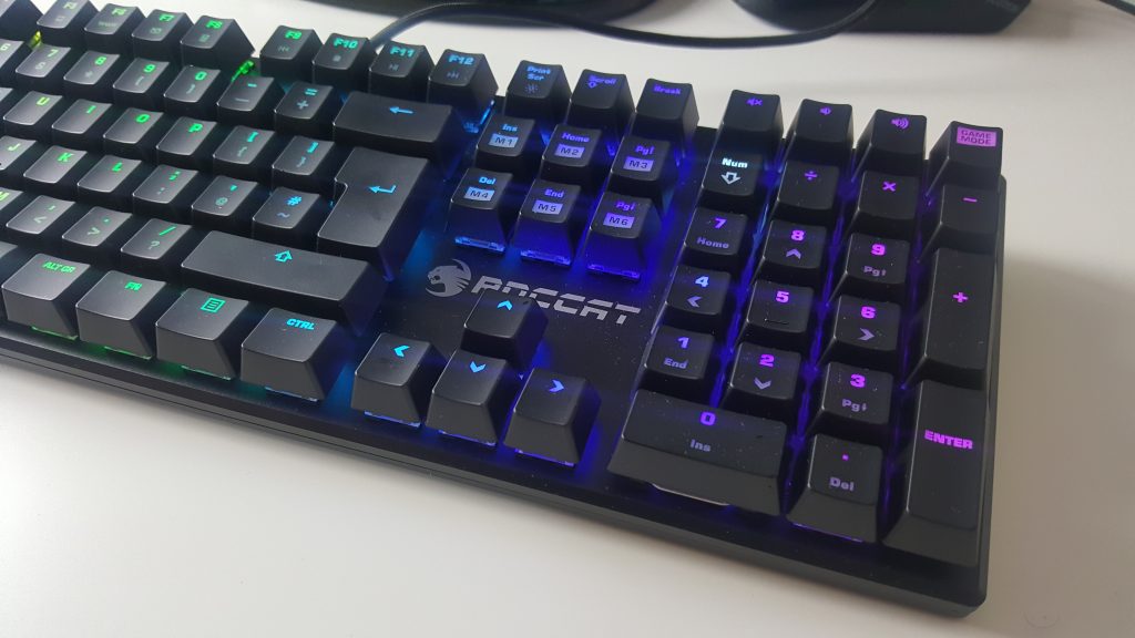 There’s a number pad on the right hand side as well as a full QWERTY keyboard on offer. The keys a quite close together, and coming from Roccat’s Skeltr keyboard, it’s taken some time to get used to the mechanical keys. Inside are their brown switches that give you a light tactile feedback on every keystroke, and with their 1000Hz polling rate, or 1ms response time, the Roccat Suora FX is a great option for gamers.