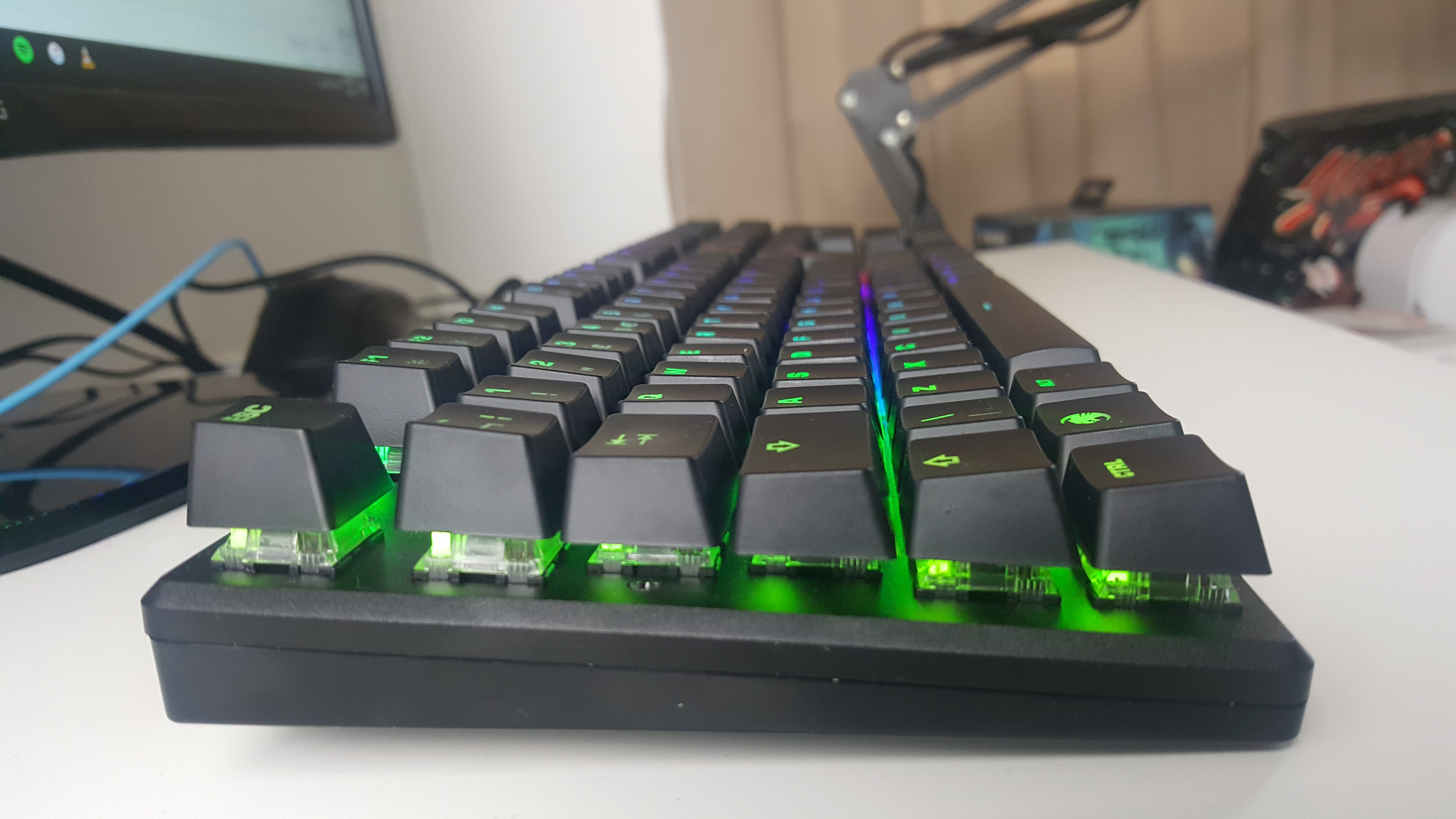 Although having RGB lighting is rather fancy, what would be the point if the keyboard didn’t perform? The Roccat Suora FX stands quite tall, thanks to the brown switches and transparent TTCs. However, this wasn’t enough to put me off. It was fairly comfortable to use but wrist supports wouldn’t feel too out of place. There are two backer stands so you can rest the keyboard on a slight angle, which helped with finger placement. The keys were solid when in use, although touch typing is a bit of a problem if you’re not used to high keys on a mechanical keyboard. I would have liked to see the key placement a little lower. I played a few rounds of Battlefield 1 with the Suora FX and found no real issues with feedback or the response time.