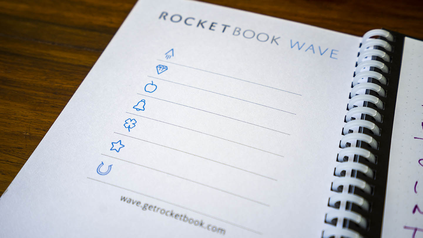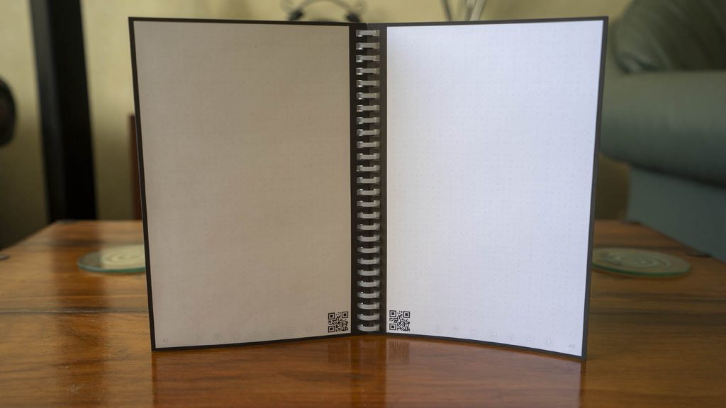 The Rocketbook has around 60 pages which are A5 in size and are dotted rather than lined. They suggest you fill up the whole thing before deciding to wipe it clean with radiation. That’s right. They claim that you can put this notebook into your microwave, give it a quick blast and it comes out fresh and new. However, there’s two catches.