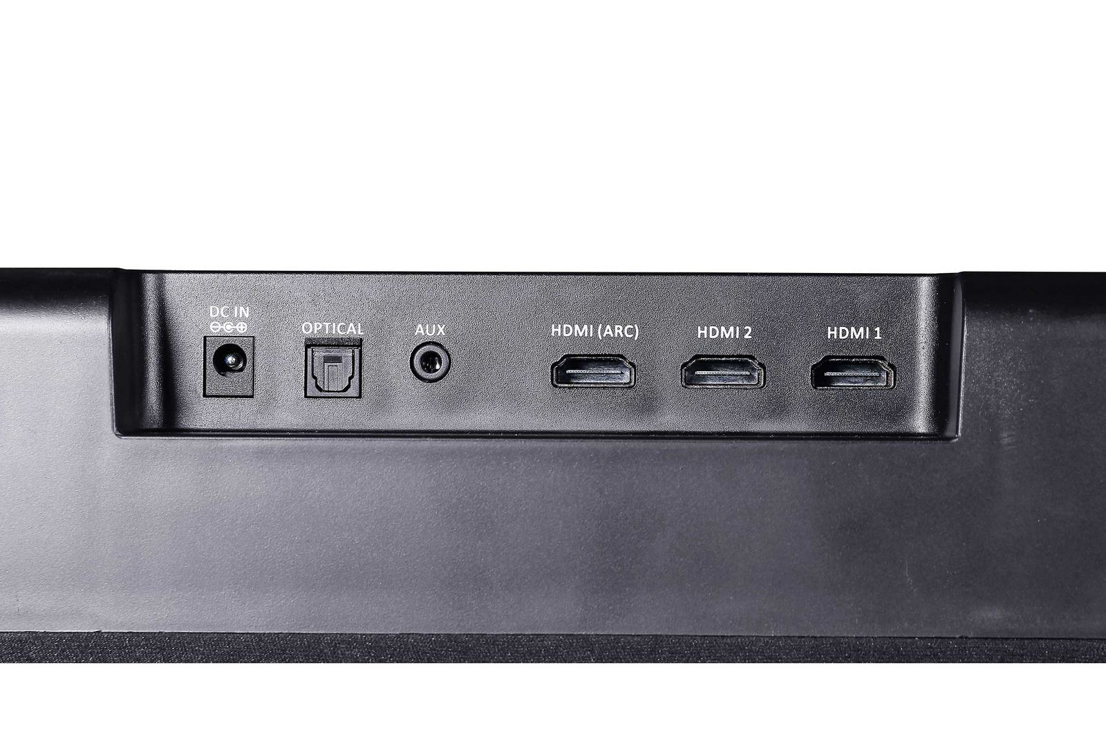 Open the box and the soundbar is protected at either end by polystyrene supports, which is good since the box looked a little battered to me when it arrived. The soundbar was in perfect condition, so must offer enough protection while in transit. Other than the soundbar, there is a remote control, power cable and instructions inside the box. The soundbar 85cm in length, has a black casing with a cloth grill covering the front of it. There is a digital display in the centre of the speaker, above a Roth logo. The display shows various information and has five buttons underneath it, to control the soundbar. Buttons include source, mode, volume up and down, and power. Don’t forget there is a remote control included, so no need to keep getting up to control the soundbar. On the back of the soundbar are the inputs/outputs and include three HDMI ports, one of which is a passthrough, an aux in, optical in and power in.