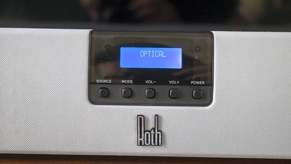 Just to let you know first, the Roth SUB ZERO 3 comes in two different colours – black and white, and we were sent the latter to check out. The soundbar itself has been very well designed, and will keep a living room area looking quite tasteful and minimalistic. The rear however has this very plasticy feel, and there is a tight cloth that spans across the face. There is a small control panel, which doesn’t really suit a moder naesthetic, but as a simple and traditional setup goes, it’s pretty nice.