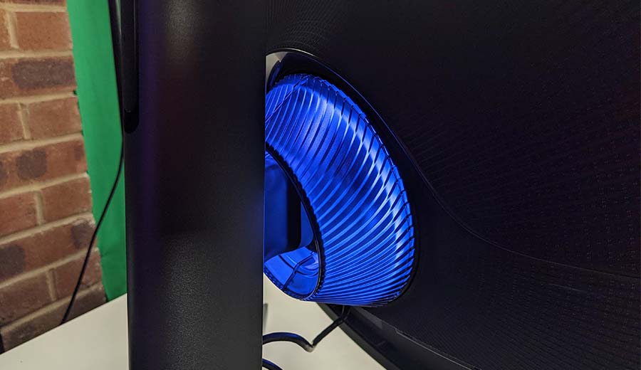 Also round the stand is some LED detailing, which really pulls the monitor together, plus it’s also bright enough to shine off a wall that you have your monitor against. It doesn’t react to what’s being displayed on your monitor, like it does with the Philips Ambilight type technology, but it does give a nice edge glow depending on how close the monitor is to the wall. There are five different colour modes in total including a breathing effect, RGB, and a flash, but by far the best is a static light in a nice ice blue. But, for you gamers out there, RGB breathes through all the colours slowly.
