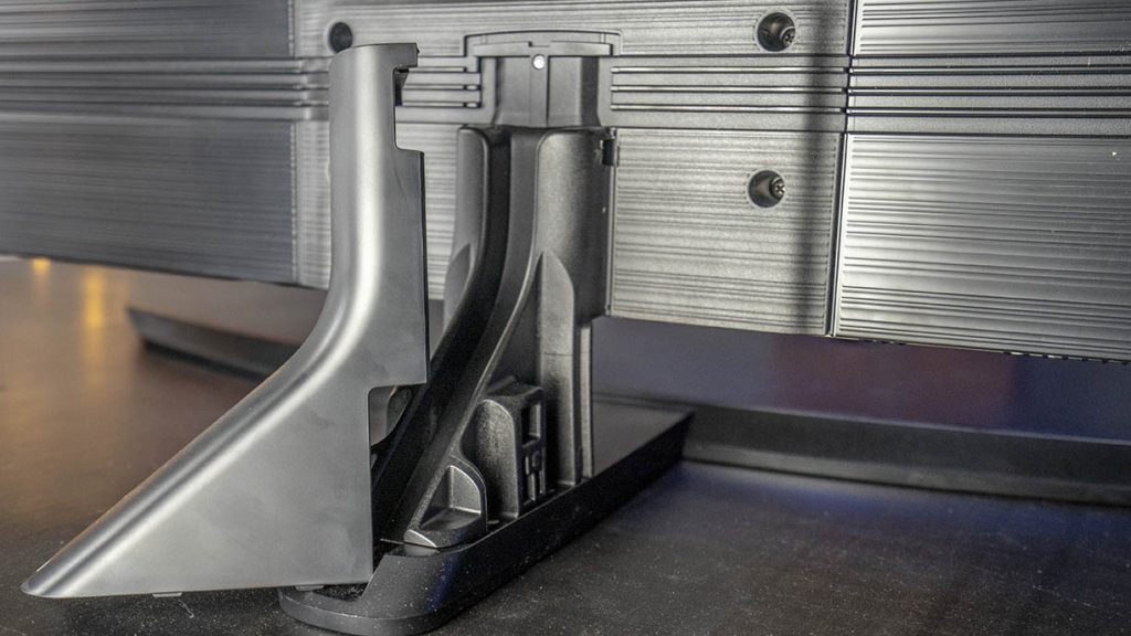 On the packaging and on delivery notices, it says this is a two man job. Believe me, it is. OK, I did eventually get it out of the giant box, screwed on the ultra straight forward stand and get it on the TV unit, but I majorly pulled an elbow muscle that still has restricted movement a week later. But it is my fault. The TV is not actually that heavy at 26.3kg, but it is large and cumbersome, so help is a first class idea.