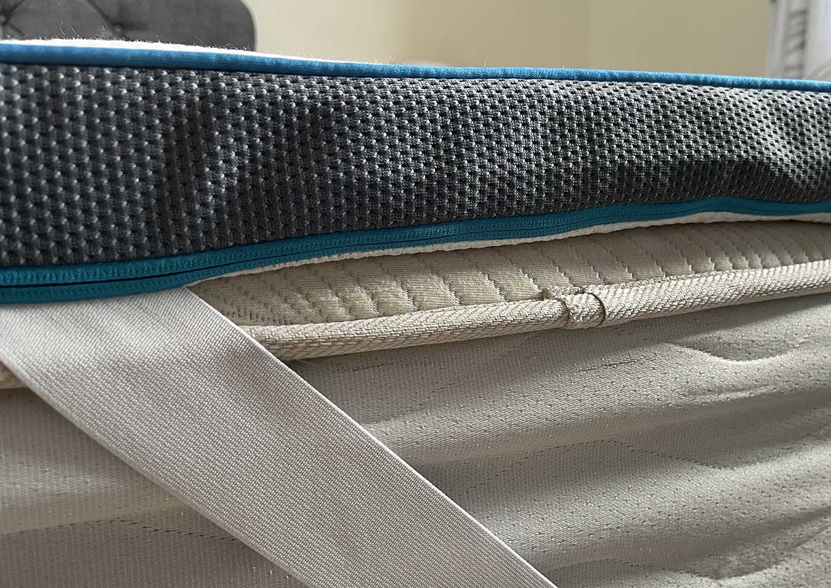 That leads me nicely to their Hybrid Mattress Topper. I have one and it’s honestly changed my sleep. It’s only an additional 65mm on top of my mattress, built up from three layers of Aerocoil springs, foam and cotton cover. Kept in place by four adjustable straps, one within each corner.