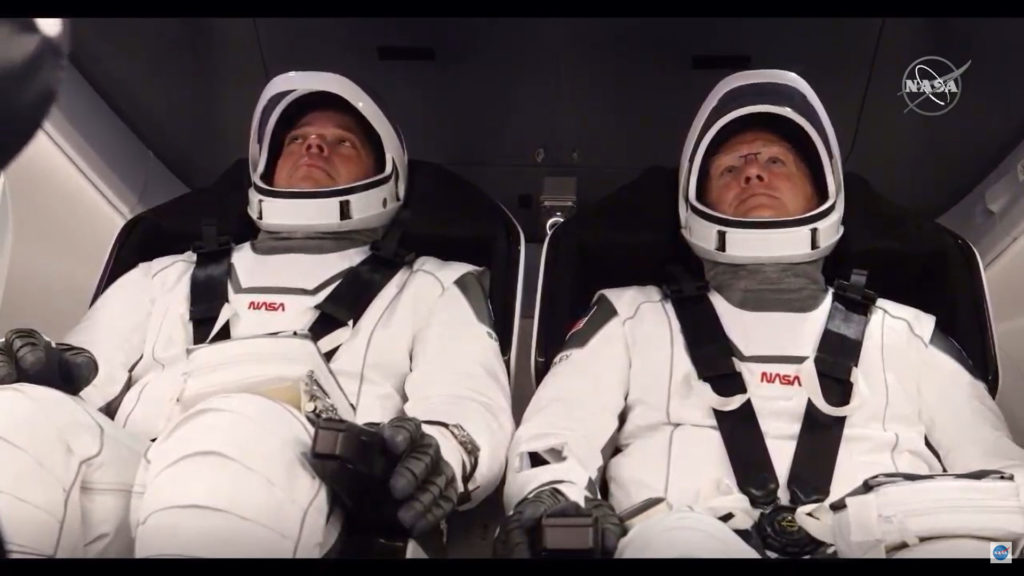 Inside the Dragon captule are astronauts Doug Hurley and Bob Behnken. Everything went really well, with all stages of pre-launch happening on time.