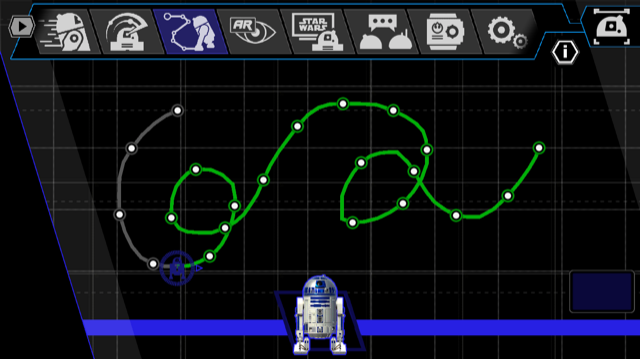 The main feature of the droids is to control them, which you do by moving your finger around the screen, within the app. Left, right, forwards & backwards, you can move your droid anywhere you want. There are also a number of preset animations, which see your droid making familiar sounds & gestures. One of my favorite is the angry R2 animation, which see’s him get in a fluster and then fall over. There is also a button to give your droid a speed boost. If you want to try something different, you can map out the route of your droid, using a number of points. Just touch the screen and draw the route you want, once finished, the droid will follow that route. Overall the controls work very well, they are easy to use and responsive, thought BB9E takes a little to get used to. The route mapping is a little tricky, as the app doesn’t know how large your floor area is, so it will take a couple of tries to work out the boundaries.