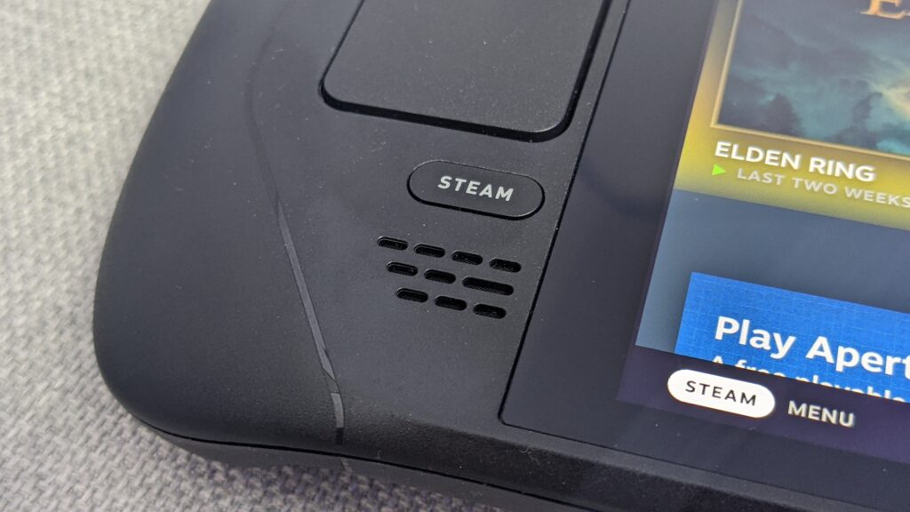 Under the pads, you’ve also got your Steam button, which takes essentially to the main menu and allows you to access various areas of the Steam Deck like your games library, game settings, media files and settings. The right is quick menu access, and here is where you’ll spend some time fine-tuning the Steam Deck. You can find things like your brightness, audio mixes for sound and voice, your friends list, notifications and more. There are two speakers on the bottom which offer some decent sound while inside of games. They won’t replace a decent headset but will do the job if you’re in the back of the car on a journey or chilling out on the couch playing some games. In terms of inputs, you’ve not got many. One USB-C charging the device or for external peripherals like a display or a keyboard and mouse, and a 3.5mm headphone input.