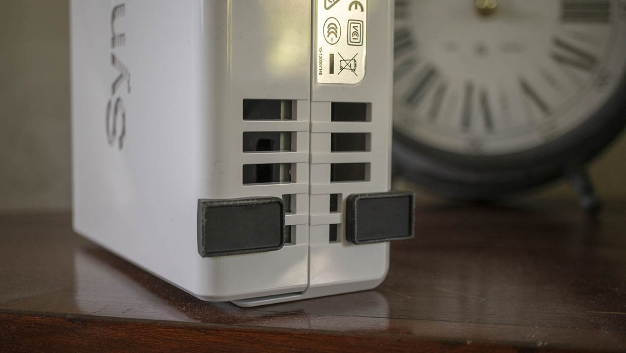 Synology is aiming their new NAS drive at the budget conscious, average consumer, AKA someone who wants somewhere to store their holiday snaps and home movies, as well as music files. There’s no bells and whistles in their objective here. It’s a one-bay chassis which means it can only house one hard drive. In our case, we’re using a bundled 3.5″ 4TB IronWolf drive from Seagate who are an official partner of Synology. The IronWolf is a NAS specific hard drive which is different from a desktop hard drive. Basically, it means it’s built to withstand constant 24/7 use as well as some other gubbins. It is also compatible with 2.5″ drives too. Both sizes need to be connected via SATA connection.