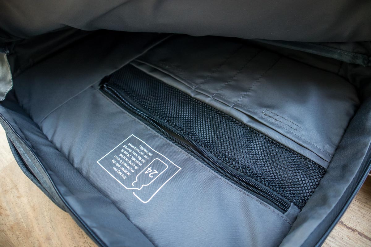 There are two main compartments to the bag. The first is accessed at the back and is the laptop area. It is just a padded compartment for your laptop and there are no straps for securing said laptop, so if it’s on the smaller size, it will move around.