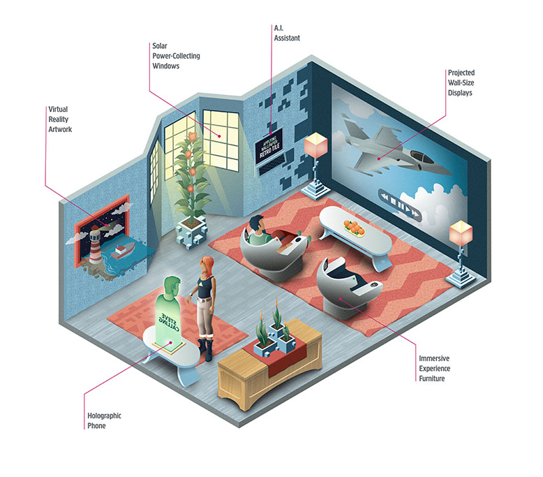 Experts in the technology, health, and housing industries were asked what trends they believe will be part of the average UK residence in 2050. Working with artists at Muti, the award-winning illustration studio in South Africa, Plusnet can reveal the future of the British home.