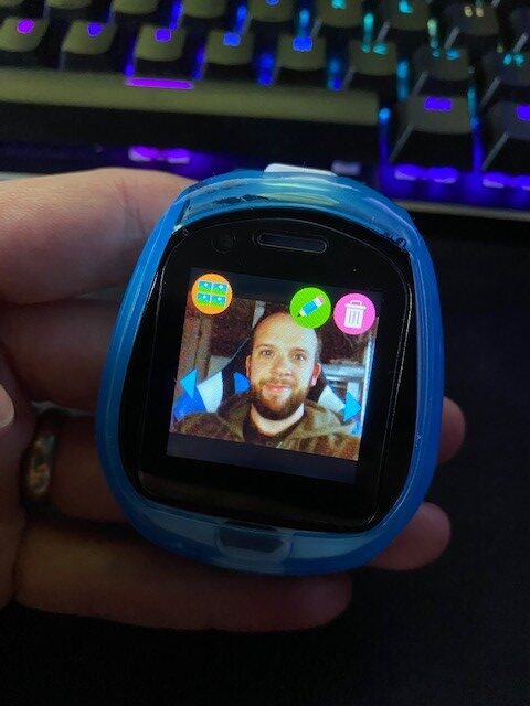 There are the cameras, the POV camera at the top of the watch, plus the selfie camera built into the watch face. You can take photos, edit them, save them, share them, video as well. Sharing comes in the form of messaging from one TOBI watch to another. You can link the two together, send photos, and emojis to each other, plus voice messages.