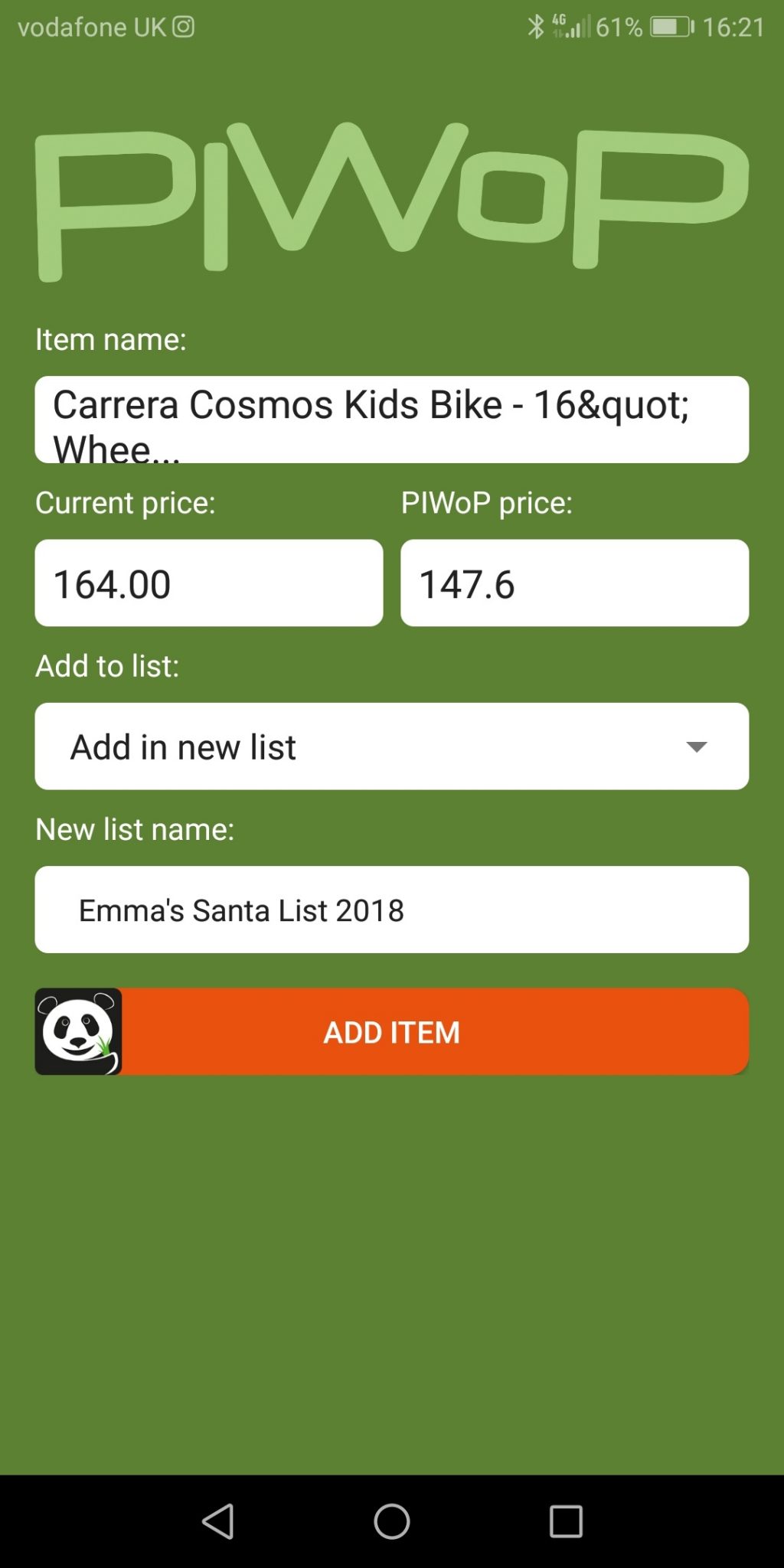 This app is great for saving you money on every Christmas purchase, from stocking fillers to Christmas trees. PIWoP (Price I Want to Pay) checks prices and discounts for you daily. You find the items you want it to monitor, organising them into lists if you want to such as “Christmas Decorations” or “Emma’s Santa List 2018”. Set prices and the tool alerts you when any of the items drop to, or below, these. Saving you time as well as money!
