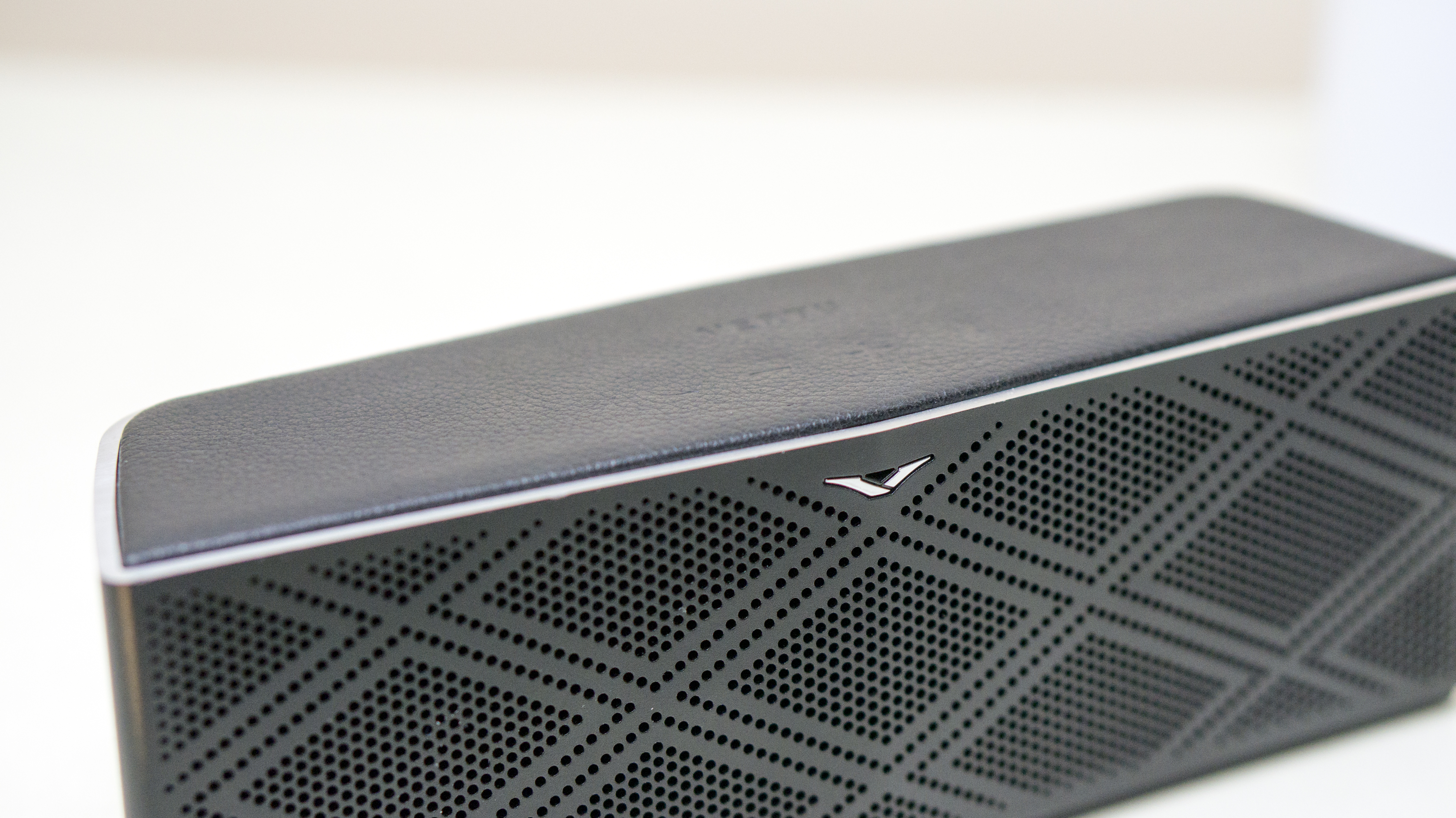 However, the press is in the form of an audible click so you know when you’ve pressed. Being covered in the leather on top I like, but it does make for a harder time pressing the buttons. I would have liked to have seen some touch buttons here, but overall the V speaker looks very fancy.