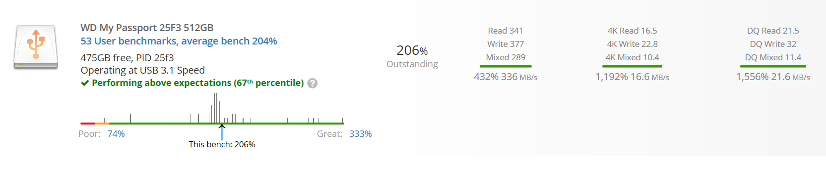 • WD state its the fastest My Passport drive to date with read speeds up to 515MB/s using USB Type-C technology. Also works with USB3.1 gen 2 and USB 3.0/2.0 via USB A port.