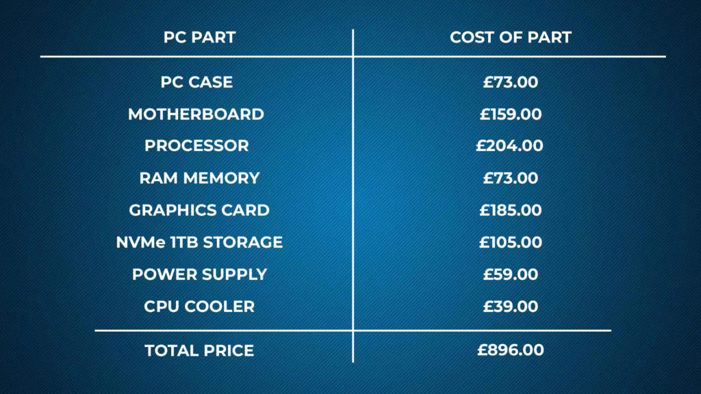 As all gamers know, you could spend thousands on an absolutely killer system. But in truth, not everyone has the bank balance for huge powerful rigs, and sometimes, overkill can be pointless if you want something to enter the PC gaming world – and this PC we’ve put together is the sort of thing you can actually buy without damaging your overdraft. To let you know, we’ve spent a total of £896 on this machine. Of course, PC part prices can fluxuate so regularly, so take this as a guide price, rather than something we can 100% set in stone. Also be aware, that most of these items, except the parts that Abkoncore supplied, were purchased second hand through eBay, so we made a little bit of a saving there too.
