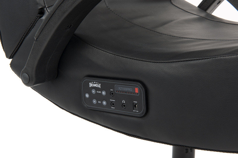 The speakers are controlled with a handy set of buttons on the side of the chair. There are two buttons to raise and lower the volume, two buttons to raise and lower the bass levels and a power button. On the control panel you can also find a headphone port, a power port and auxiliary port to plug your media device into it. The Xenta Pedestal Gaming Chair is compatible with all of your media devices including games consoles, gaming PCs and things like laptops and MP3 players and iPods.